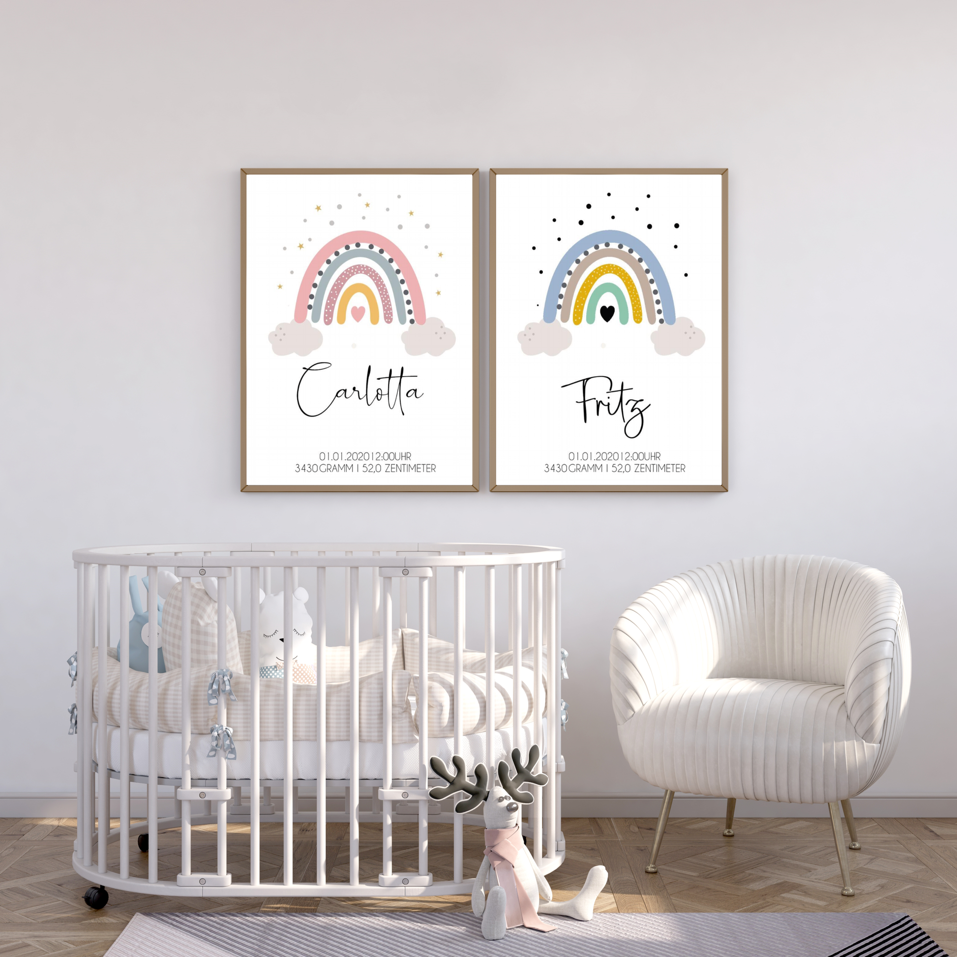 Bilde das unvergessliche Erlebnis der Geburt mit einem symbolischen Regenbogen als Poster ab und hänge es in dein Wohnzimmer, Esszimmer oder Schlafzimmer. So kannst du diesen einzigartigen Moment jeder Zeit bewundern. Deine Freunde, deine Familie und du werden begeistert sein von der Qualität der Farben und des Posters!