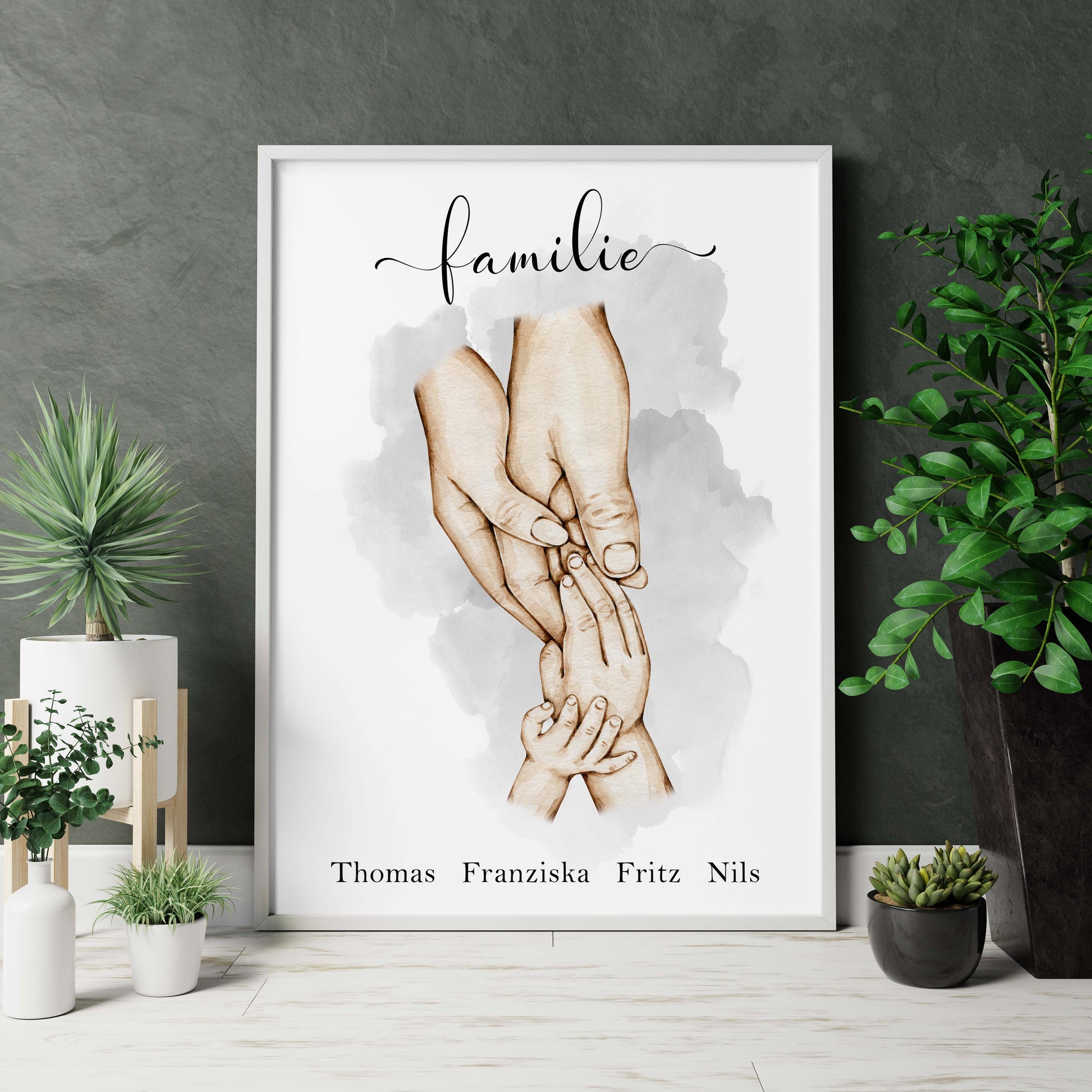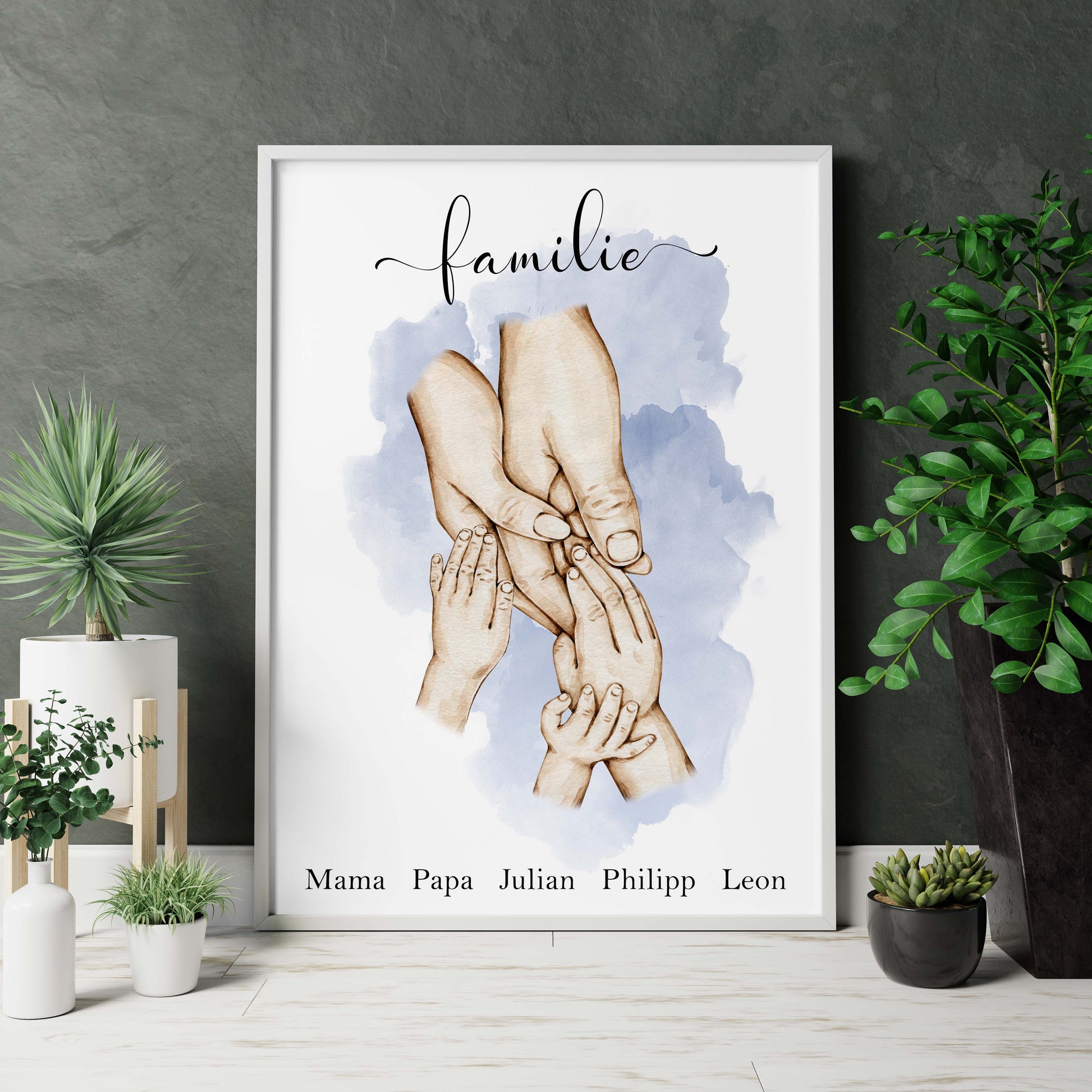 Gestalte jedes Stück nach deinem Geschmack. Platz für 1-4 Kinderhände inklusive aller Namen ermöglicht ein individuelles und liebevolles Geschenk, das zugleich ein starker Ausdruck der Familienzusammengehörigkeit ist.