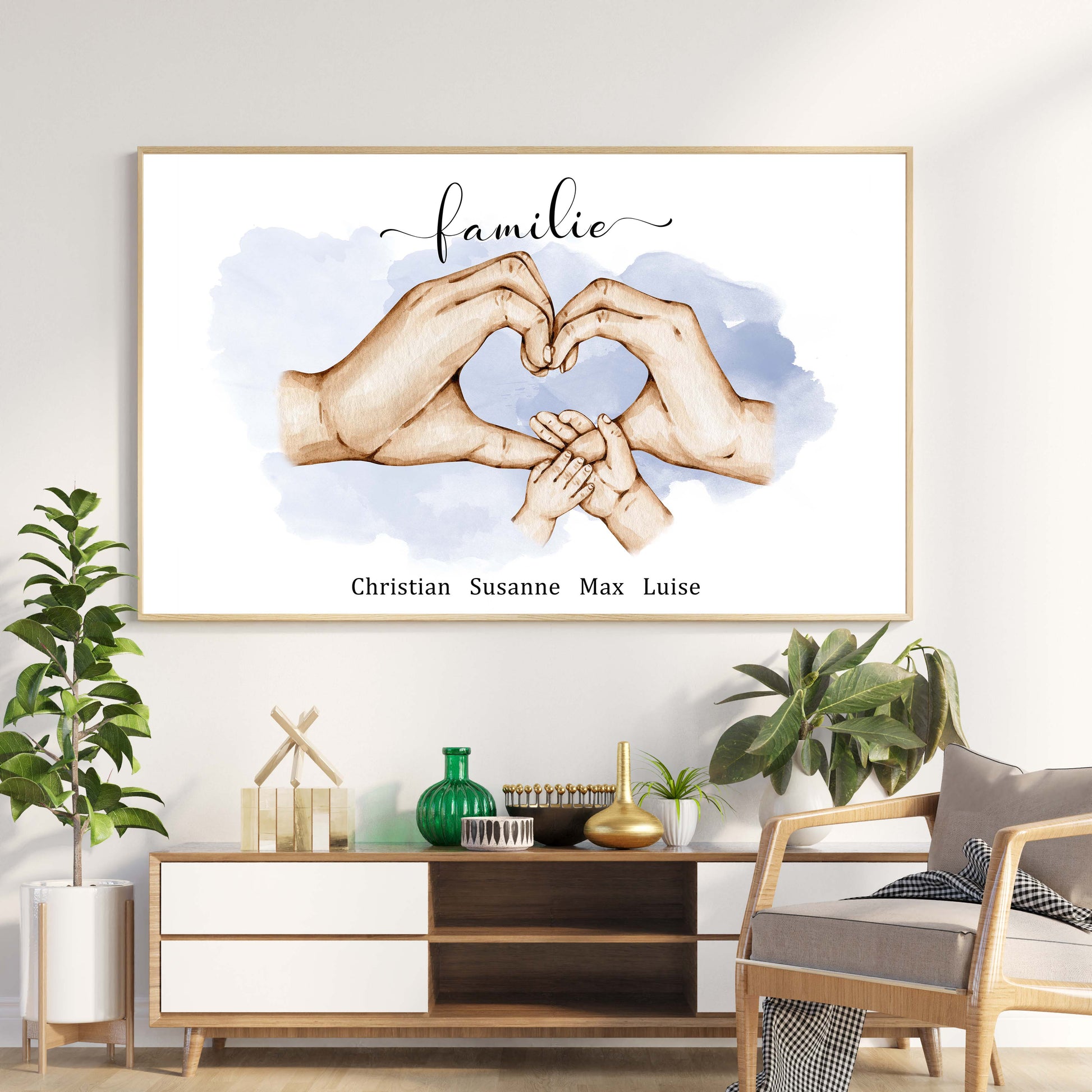 Gestalte jedes Stück nach deinem Geschmack. Platz für 1-4 Kinderhände inklusive aller Namen ermöglicht ein individuelles und liebevolles Geschenk, das zugleich ein starker Ausdruck der Familienzusammengehörigkeit ist.